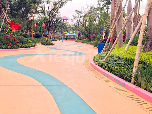 鋪裝類型:壓印藝術(shù)地坪、洗砂面藝術(shù)地坪、礫石面藝術(shù)地坪