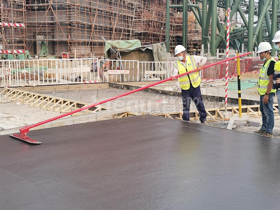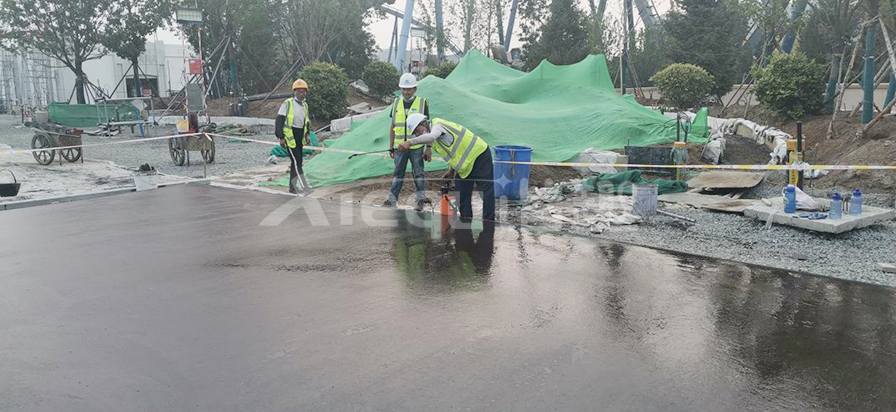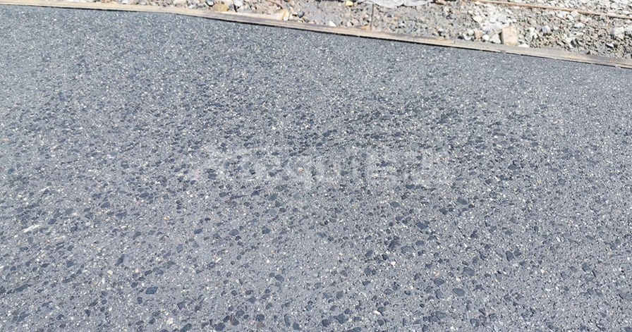 礫石聚合物藝術(shù)地面是在通體彩色混凝土初凝前合適的時(shí)機(jī)按照一定的比例要求將特殊骨料均勻的拋灑于彩混面層,再將骨料拍入面層后進(jìn)行收光,最后在面層均勻噴灑鈍化劑薄膜覆蓋,待混凝土固化到一定程度對表面進(jìn)行清洗露出骨料原貌的一種裝飾做法。