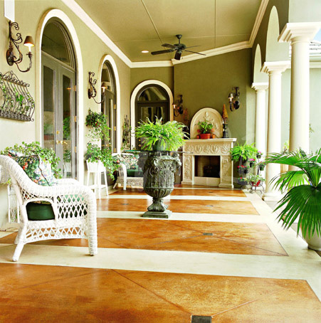 酸著色劑的用途很廣泛,既可單獨(dú)完成對混凝土表面的藝術(shù)裝飾,又可與彩色混凝土藝術(shù)地坪搭配使用以滿足更高要求的混凝土裝飾效果。
