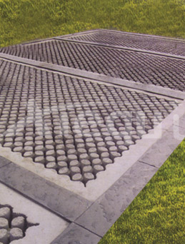 4. 鋼筋增強:植草地坪系統(tǒng)必須用鋼筋連續(xù)增強,鋼筋要綁扎固定于墊層上5~7.5cm處。承載超過10噸時,應采用直徑2.9CM的鋼筋;承載10噸或小于10噸時,應采用直徑1.4CM的鋼筋。